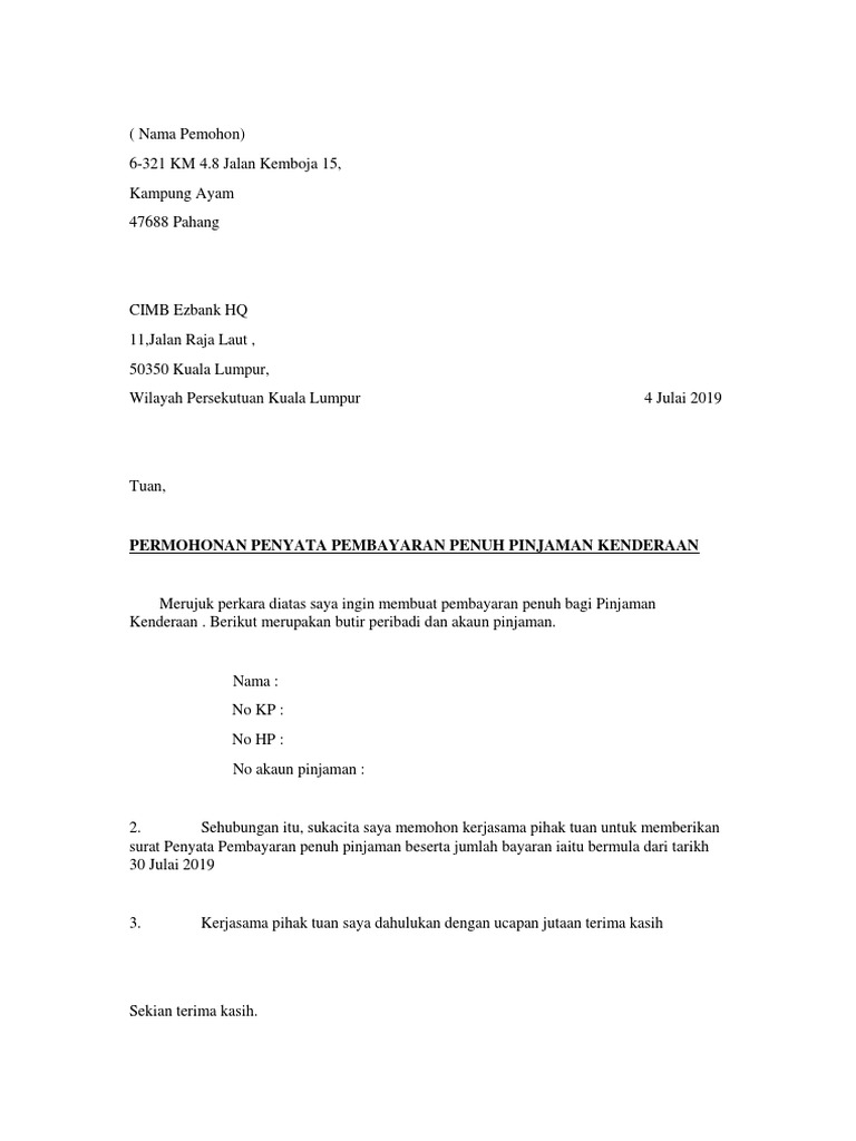 Rajin nak post cite sebab aku sendiri pun tercari2 dlm cik google contoh surat ni. 2122019 Pilih kereta dulu tengok budget kereta yang anda mampu. Tujuannya adalah untuk pengesahan bahawa anda membuat pinjaman tersebut.